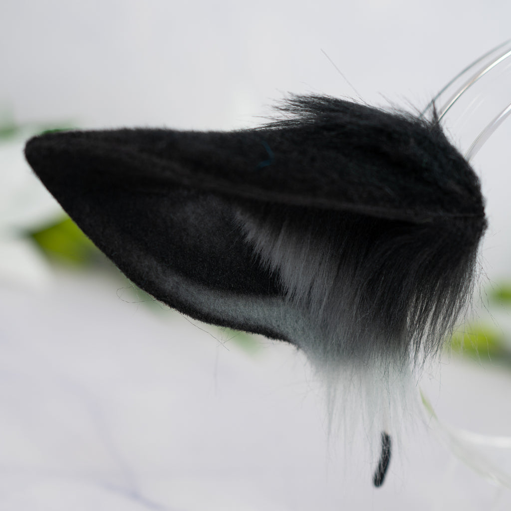 What is offered: A thin metal headband with a pair of faux fur lamb ears in the color grey/black
